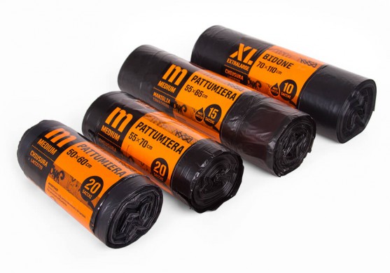 This line, which is characterised by packaging that is immediately recognizable and easy to read, has two variants: for Traditional collection (PE-HD and PE-LD) and for Differential collection, dry and organic (Biopolymer).
